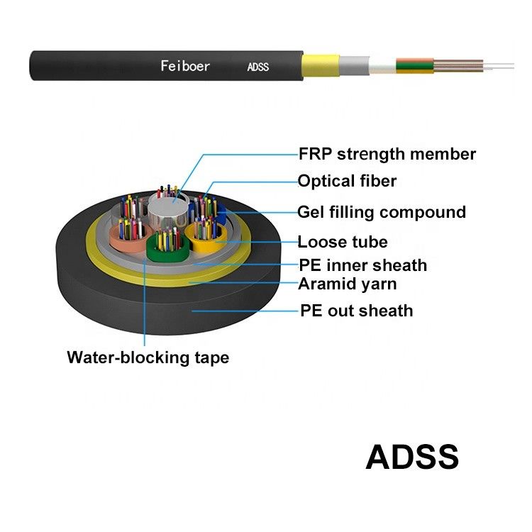 • ऑल-डाइलेक्ट्रिकल सेल्फ-सपोर्टिंग एरियल फाइबर ऑप्टिक केबल, संरचना में कोई धातु सामग्री नहीं, बिना किसी रुकावट के स्थापित की जा सकती है।